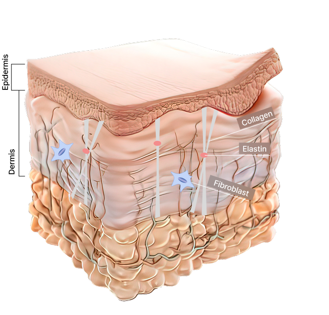 노화는 피부 깊숙한 곳에서부터 시작되며, 피부 구조 자체가 무너지며 탄력과 볼륨을 잃게 됩니다.