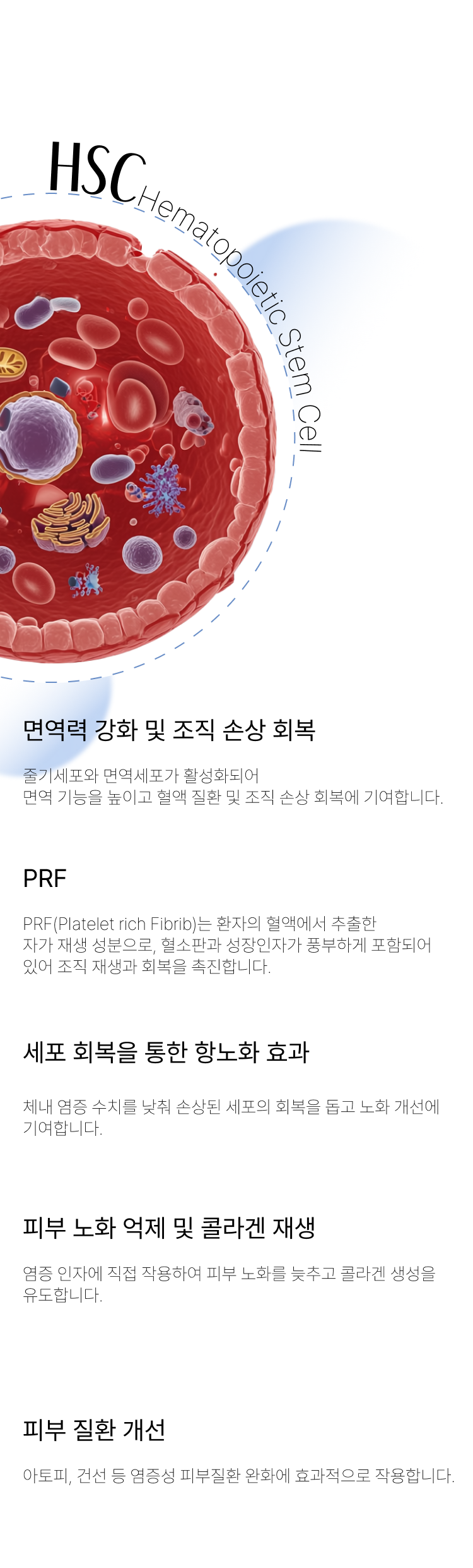줄기세포와 면역세포가 활성화되어 면역 기능을 높이고 혈액 질환 및 조직 손상 회복에 기여합니다.